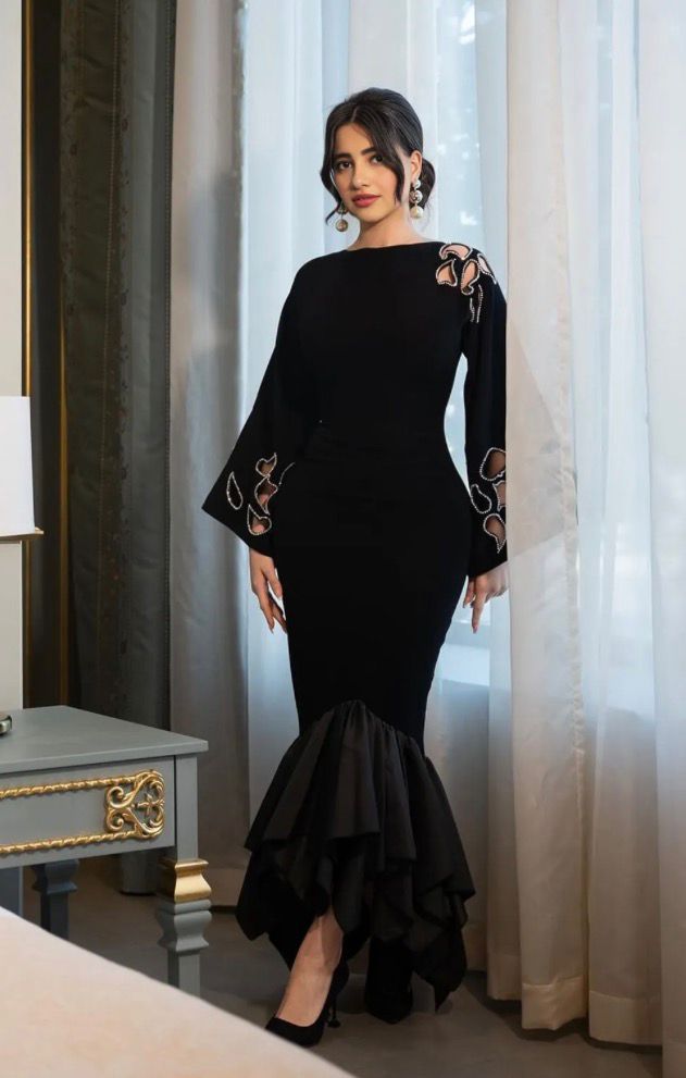 It feels high-end, feminine, and aligns perfectly with the embroidered petal cut-work and sculpted silhouette. Its bateau neckline enhances the elegant profile, while the layered mermaid hem creates graceful volume and statement-worthy movement. Perfect for formal gatherings, cocktail evenings, and modern celebratory occasions.